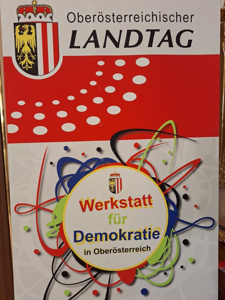 Hier wird alljährlich die Möglichkeit geboten, am Workshop „Werkstatt für Demokratie OÖ“ teilzunehmen. Nicht immer werden unsere Anmeldungen berücksichtigt, da der Andrang üblicherweise sehr groß ist. Dieses Jahr hat es aber wieder geklappt.
