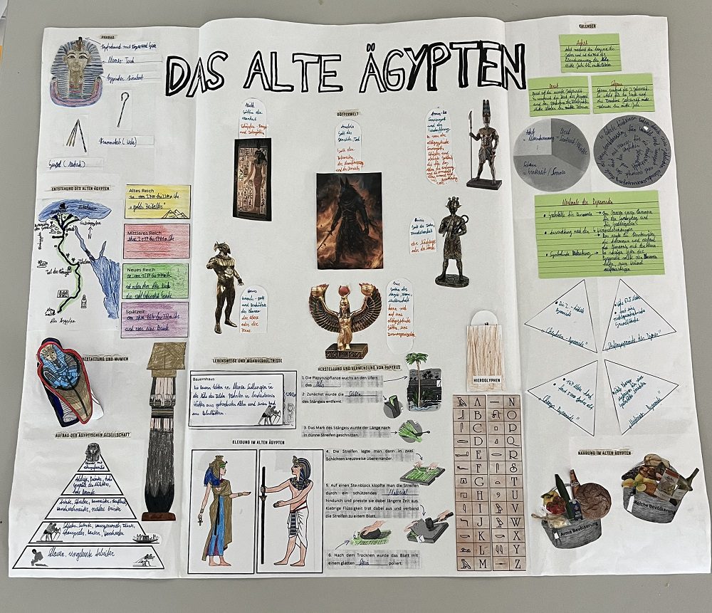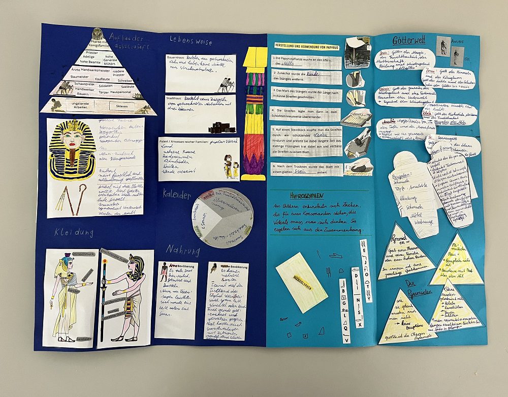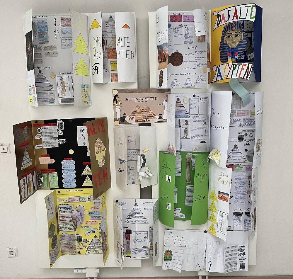 Die Schülerinnen und Schüler der 2a Klasse tauchten im Dezember in den Fächern Geschichte und Politische Bildung sowie Bildnerische Erziehung in die faszinierende Welt des Alten Ägyptens ein. Fächerübergreifend wurde dabei gelesen, gestaltet und ausprobiert – so entstanden besonders kreative Lapbooks sowie farbenfrohe Masken des Pharaos Tutanchamun. Dabei konnte Geschichte und Kreativität miteinander verbunden werden. Die Ergebnisse können sich sehen lassen!
