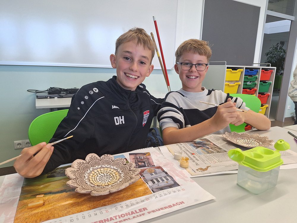 Die 3a hat die Firma „KEKOS“ gegründet. Dieser Name steht für Keramik und Kosmetik. Seit Herbst haben die Kinder – mit tatkräftiger Unterstützung von Frau Keplinger – Keramikkunstwerke produziert, die sie nun am Elternsprechtag zum Verkauf anbieten.