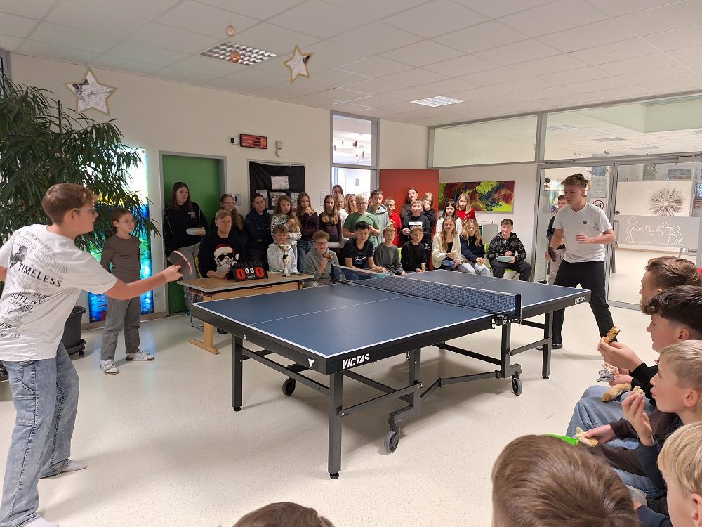 Heute am Dienstag, 23.12. kam es schließlich zum Showdown. Die Finalisten Martin Humer (4a) und Panacker Noah (4a) trafen vor versammelter Schulgemeinschaft aufeinander, um den Schulmeister im Tischtennis zu küren.