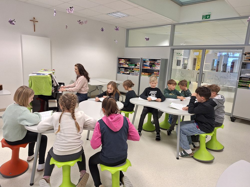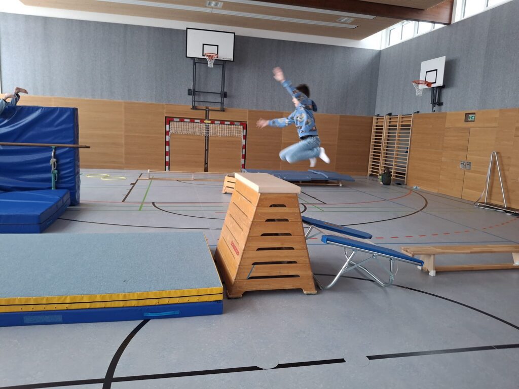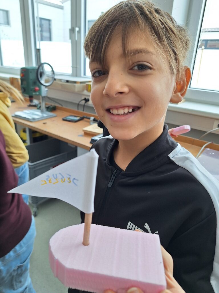 Die Kinder durften anschließend die Schule bei Unterrichtsbesuchen kennenlernen. Sie wurden im Turnsaal zu „Ninja Warriors“ und überwanden einen Hindernisparcours, sie durften spannende Experimente im Physiksaal erleben, lernten den Digitalunterricht im EDV-Saal kennen, um dann im Musikraum gemeinsam zu singen. Im Werkraum entstanden kleine Schiffchen für die Badewanne und im Englischunterricht wurden die Sprachkenntnisse erweitert. Unsere Besucher/innen staunten über die tollen Möglichkeiten, die sie in den einzelnen Unterrichtseinheiten kennenlernen durften und freuten sich über Schlüsselanhänger, der sie noch lange an einen schönen Besuch an unserer Schule erinnern soll.