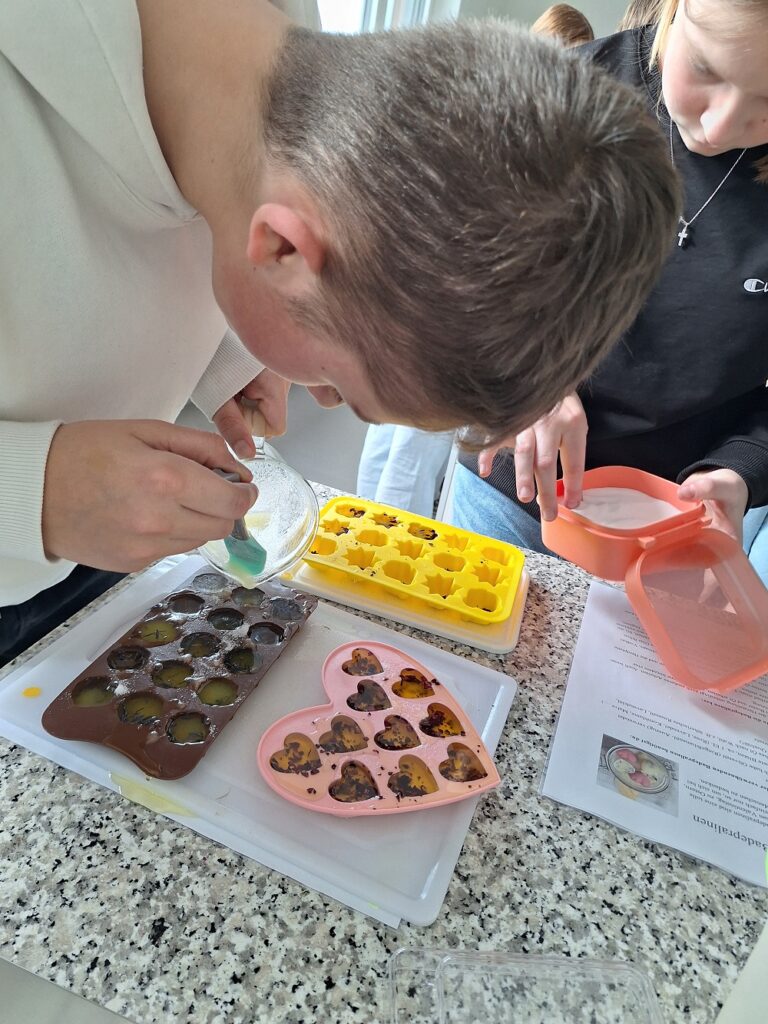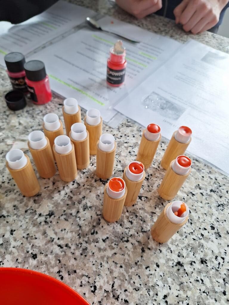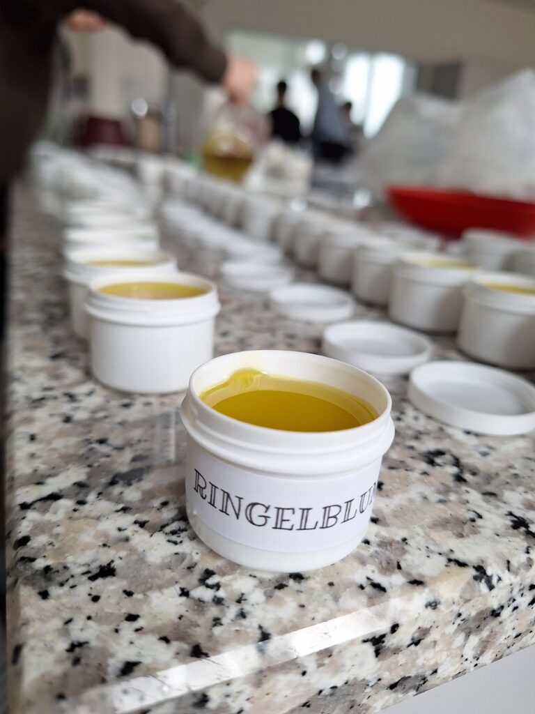 Um eine etwaige Überproduktion zu vermeiden, wurden im Vorfeld Bestellungen eingeholt. Dabei zeigte sich schon, dass viele Eltern und Lehrkräfte hohes Interesse am Kauf dieser hochwertigen Produkte zeigen. Rund 100 Lippenstifte (basic und deluxe) , über 50 Gläser Badesalz, über 70 Dosen Ringelblumensalbe und rund 130 Badepralinen mussten hergestellt werden – ein aufwändiges Unterfangen, das nur mit vollem Einsatz zu bewältigen war.