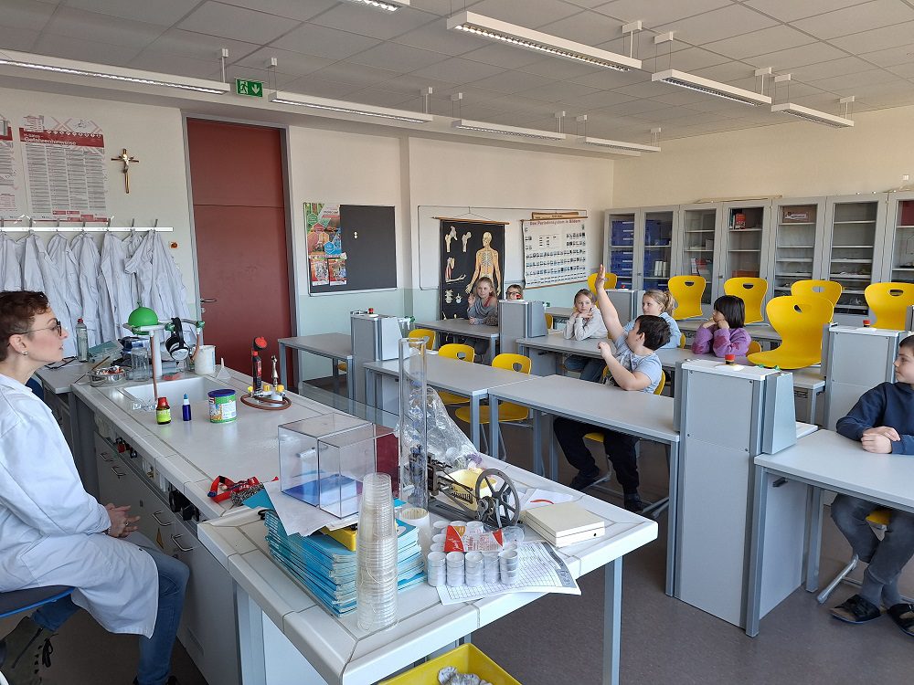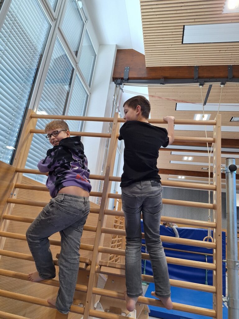 Begleitet wurden die Kinder von ihrer Lehrerin Frau Jasmin Martlmüller. Gemeinsam mit ihr wurden sie um 08.00 Uhr von einem Schulchor gleich mit einem Ständchen begrüßt. Anschließend berichtet Dir. Ferchhumer von den Möglichkeiten und Aktivitäten der Schule. Ab der 2. Stunde konnten die Haibacher dann in verschiedenen Unterrichtsfächern schnuppern. Sie lernten dabei den IT-Unterricht im EDV-Saal kennen, sangen im Musikunterricht Lieder, freuten sich auf kontrollierte Explosionen im Physikunterricht, bastelten an einem kleinen Styroporschiffchen und konnten schließlich ihre körperliche Fitness in einem „Ninja-Warrior-Parcours“ testen.